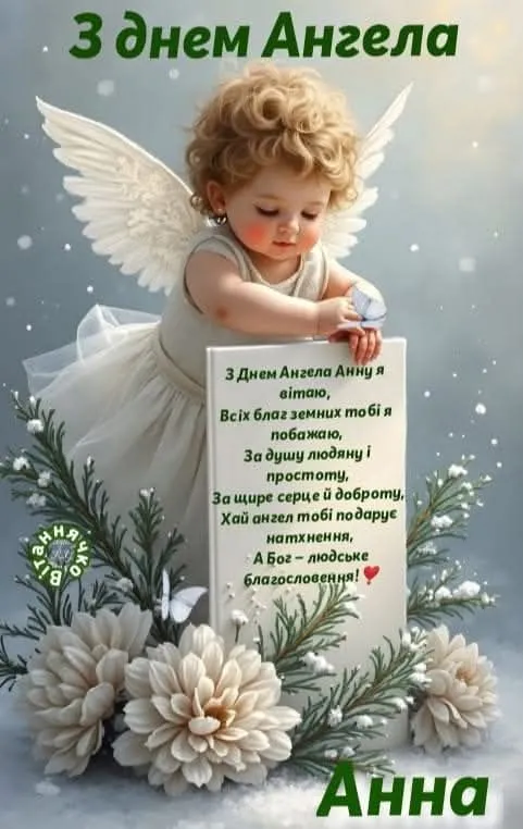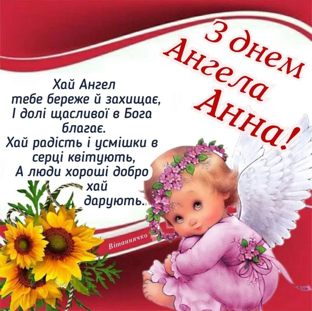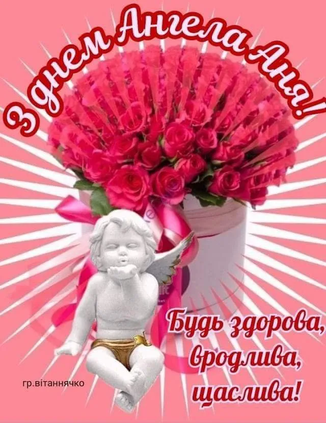 - З Днем ангела, Анечко! Бажаю, щоб кожен твій день був схожий на казку, а твій характер і працьовитість допомагали підкорювати будь-які вершини. Нехай Бог береже тебе і твою родину!