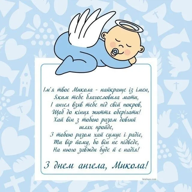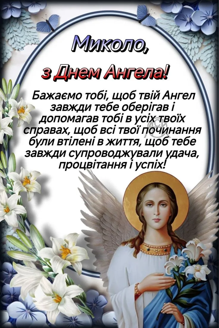 - Вітаю з Днем ангела, Миколо! Нехай у твоєму серці панує спокій, а поруч завжди будуть добрі люди. Нехай небеса охороняють тебе від бід, а доля щедро нагороджує радістю.