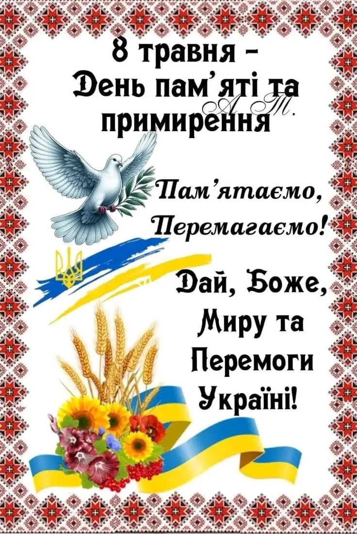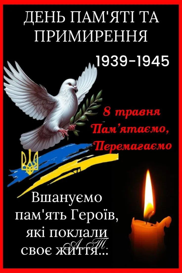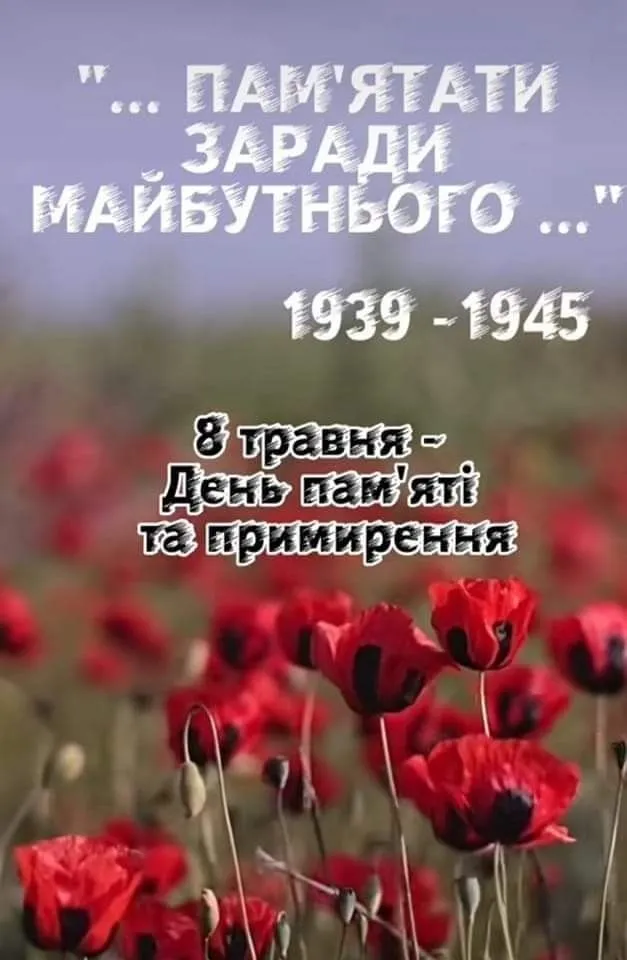 8 травня 2025 року українці разом з усім світом вшановують День памʼяті та примирення. В цей день вшановують пам’ять мільйонів загиблих Героїв під час Другої світової війни та всім, хто боровся за мир і свободу.