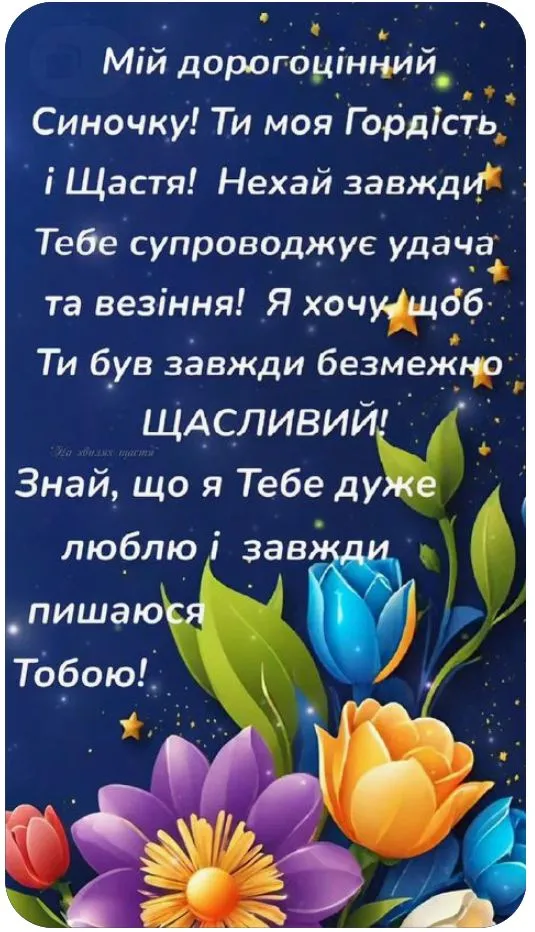 Це ідеальна нагода надіслати теплі слова, обійняти свого сина або подарувати йому красиву листівку. Обирайте найкращі привітання та картинки українською!