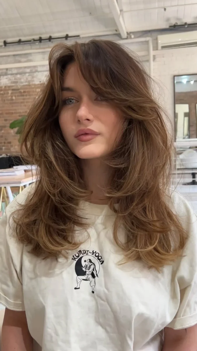 Справжній хіт сезону, який поєднує елегантність і природність. Стрижка починається з лінії брів і м’яко переходить до вилиці, відкриваючи обличчя та пом’якшуючи риси.