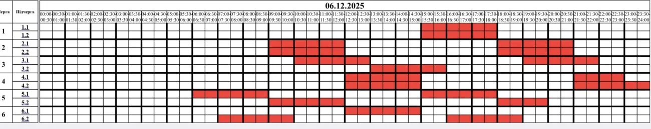 На завтра, 6 грудня, в Житомирській області діятимуть погодинні графіки відключень електроенергії.