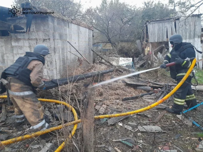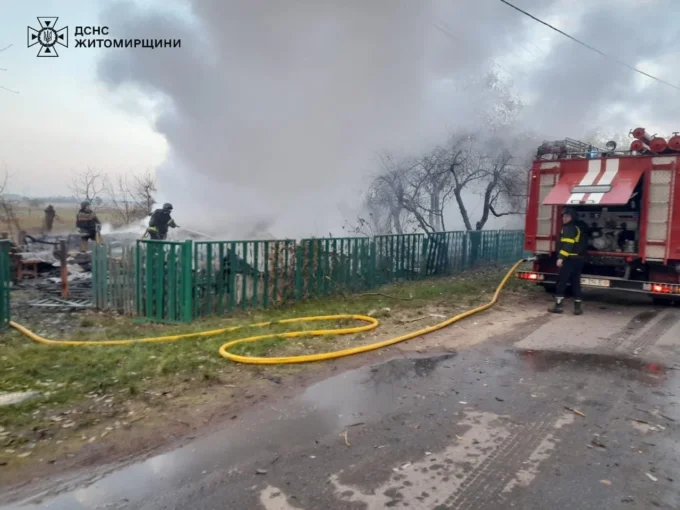 Внаслідок падіння уламків сталася пожежа у Житомирській області.