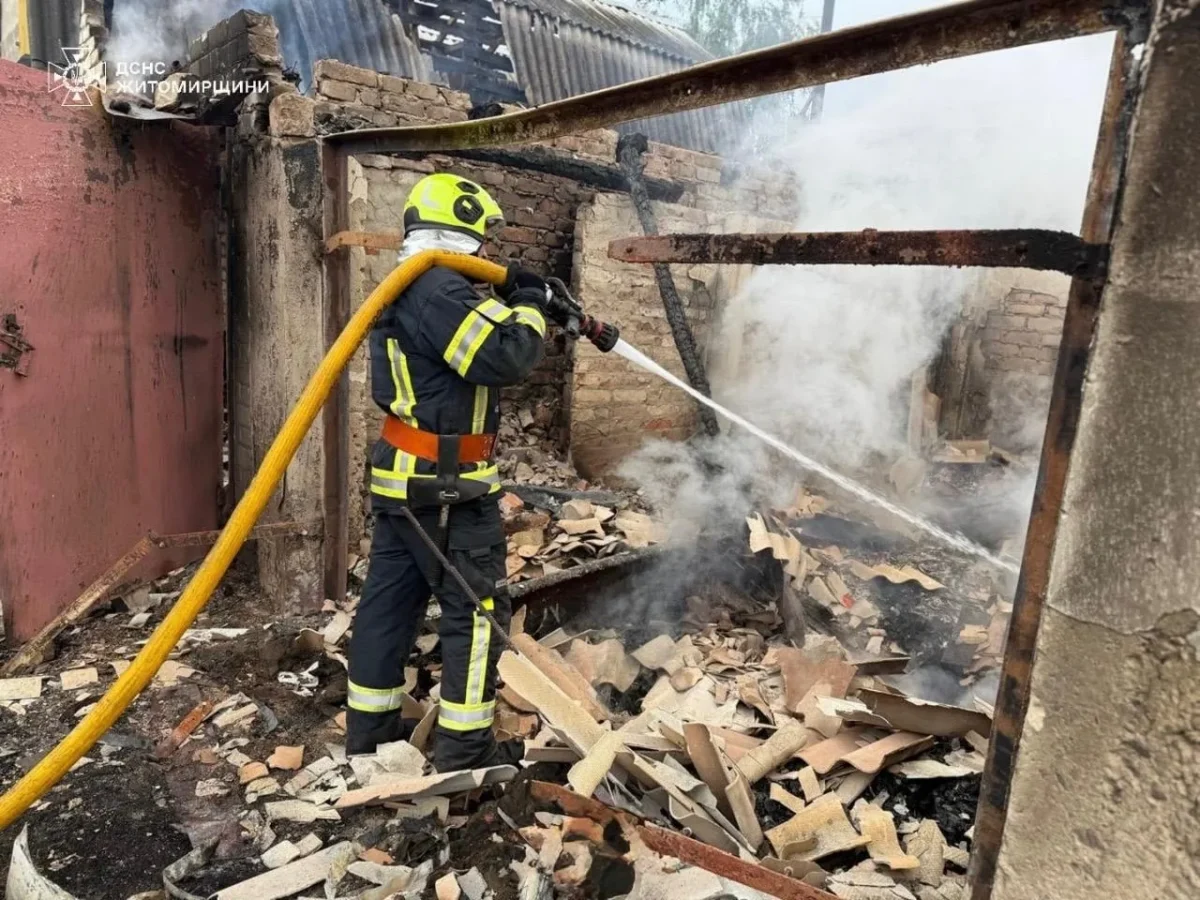 Ворожі удари спричинили пожежі в двох населених пунктах Житомирського району — рятувальники працювали всю ніч.