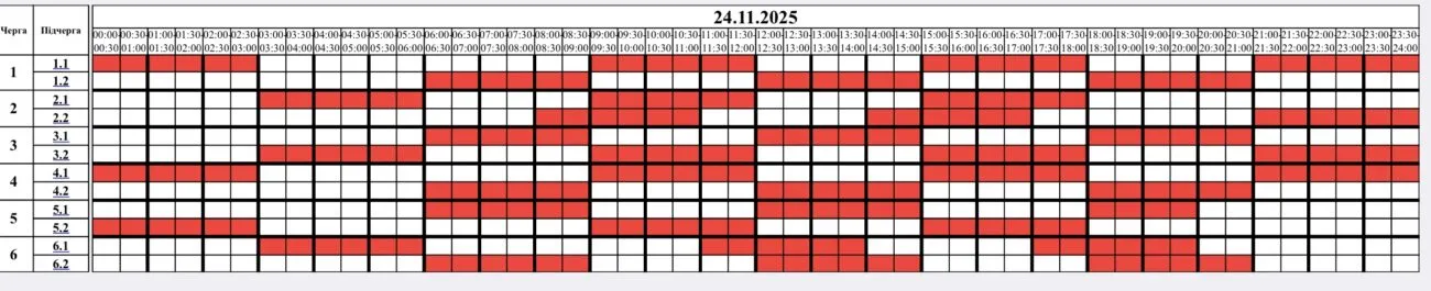 Цілу добу — з 00:00 до 24:00 працюватимуть графіки погодинних відключень (ГПВ).