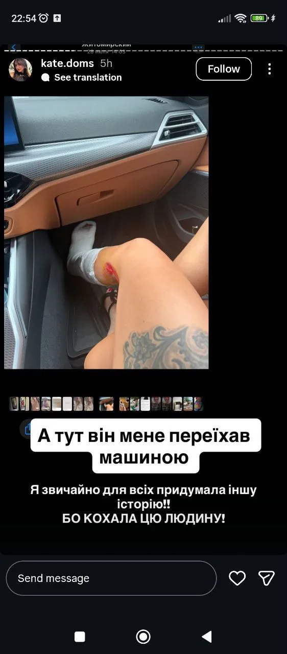 Катерина Домс оприлюднила у соцмережах фото та відео, де видно численні синці на обличчі та тілі.